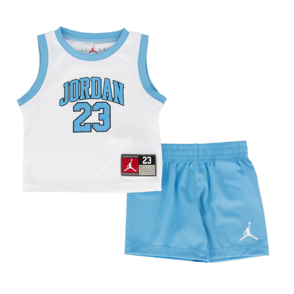 Prepara il tuo piccolo giocatore con questo set da 2 pezzi, progettato nello stile di un'uniforme da basket e realizzato in tessuto traspirante in poliestere. La canotta ha un taglio classico e una vestibilità regolare, mentre i pantaloncini abbinati hanno una cintura elasticizzata per una sensazione di comfort con cui è facile giocare e muoversi.