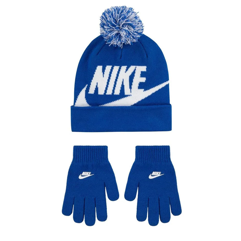 Set Cappello e Guanti da Bambino Nike SwooshSet per bambini della Nike, composto da cappello con il PomPom e guanti.Colore Prodotto: BluTessuto 100% acrilico