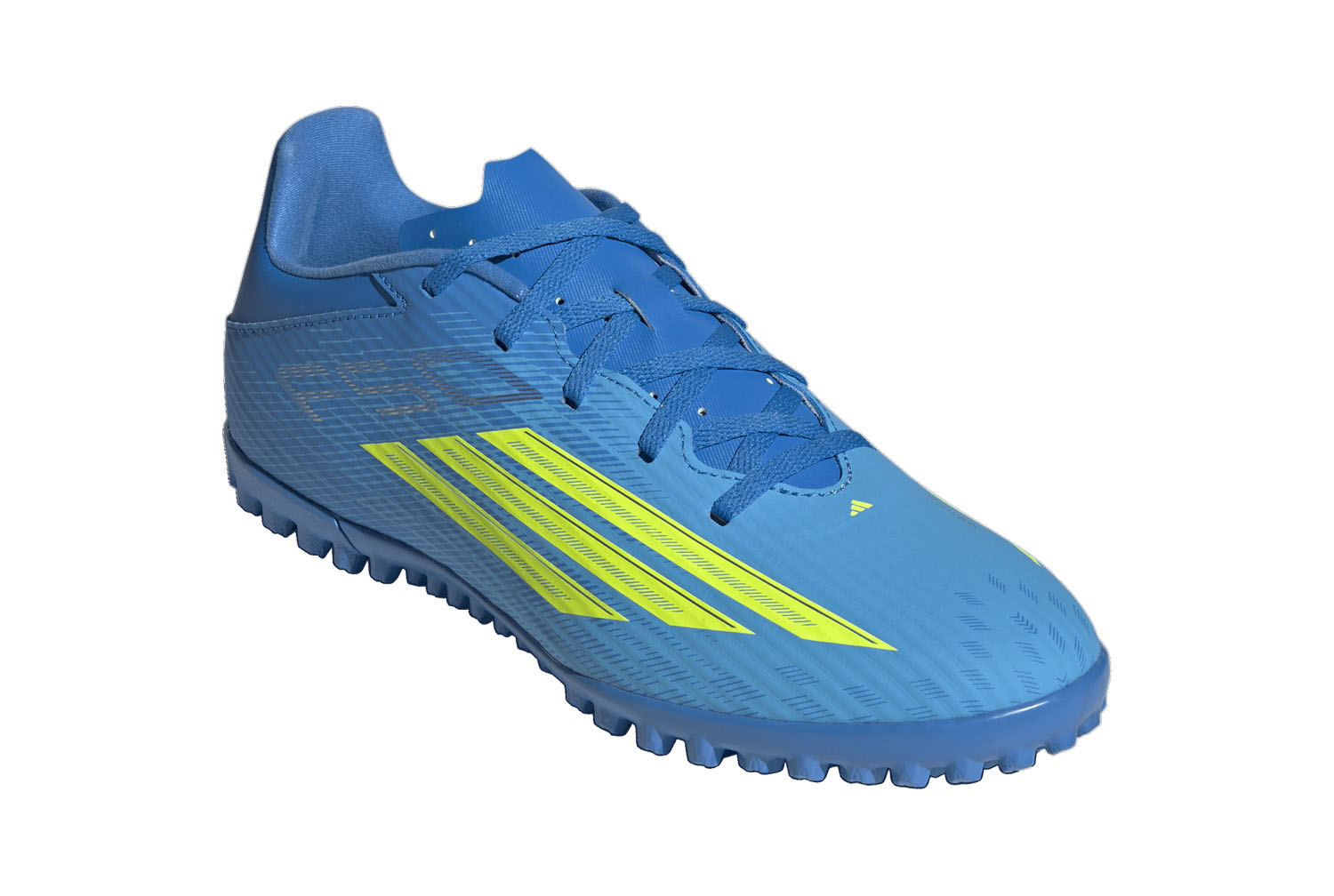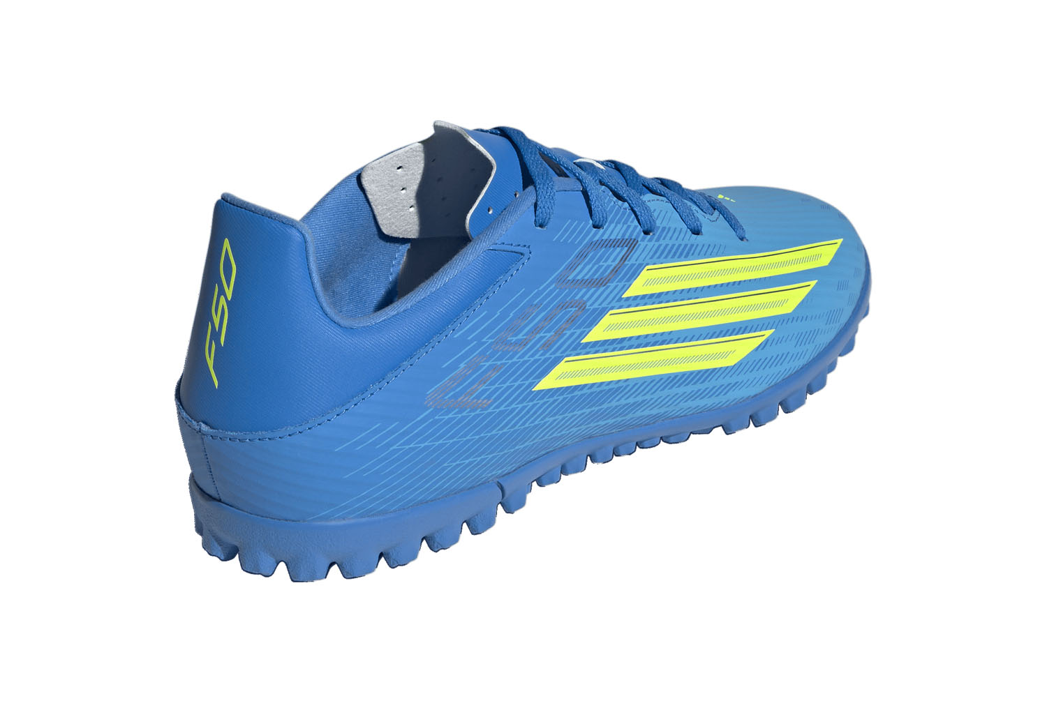 La scarpa da calcio F50 Club per erba sintetica è pensata per chi desidera velocità e precisione in campo. Con una nuova grafica della tomaia e un modello leggero, questa scarpa è progettata per scatenare la tua velocità. La tomaia Fiberskin, con linee 3D strategicamente posizionate, migliora il tocco di palla e offre un'estetica dinamica, mentre la stampa della protezione antifango Sprintgrid aggiunge un tocco di stile adidas. Progettata per i campi in erba sintetica, la suola in gomma offre trazione, permettendoti di effettuare curve veloci e movimenti agili con sicurezza. La linguetta libera con perforazioni offre ventilazione e leggerezza, aiutandoti a sentirti a tuo agio per tutta la partita. Libera la tua fiducia e gioca con stile con questa scarpa da calcio adidas per campi in erba sintetica.
