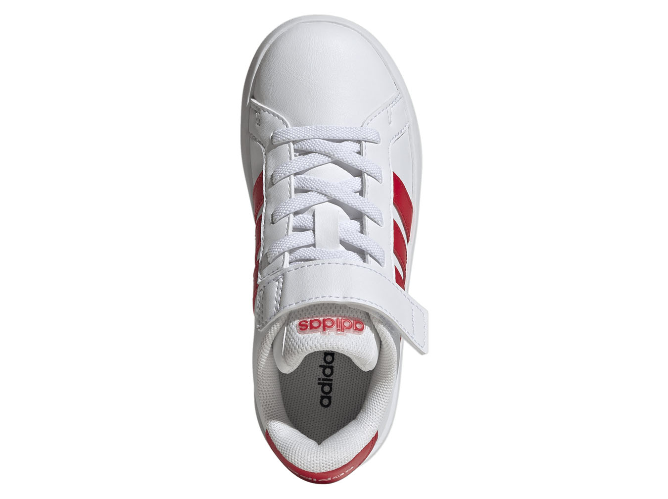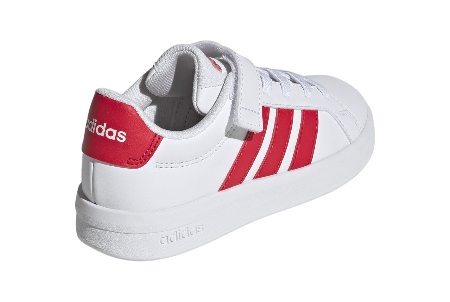 Queste scarpe rinnovano in chiave contemporanea le iconiche adidas Grand Court, offrendo un comfort migliorato in un modello che i tuoi bambini e bambine adoreranno. I momenti di gioco rimangono divertenti e le corse a scuola più veloci grazie ai lacci elasticizzati per una facile da indossare. L'avampiede flessibile fa muovere i passi dei più piccoli, mentre il cinturino superiore assicura una vestibilità sicura e stabile. I genitori apprezzeranno la suola in gomma preformata, che garantisce grip e resistenza. Di stile e robusta, questa scarpa privilegia stile e funzionalità. Il logo firma il look iconico. I loghi sulla suola, sul tallone e sulla linguetta piaceranno ai giovani appassionati di moda, mentre le 3 strisce colorate ci ricordano che questa scarpa è fatta per divertirsi.