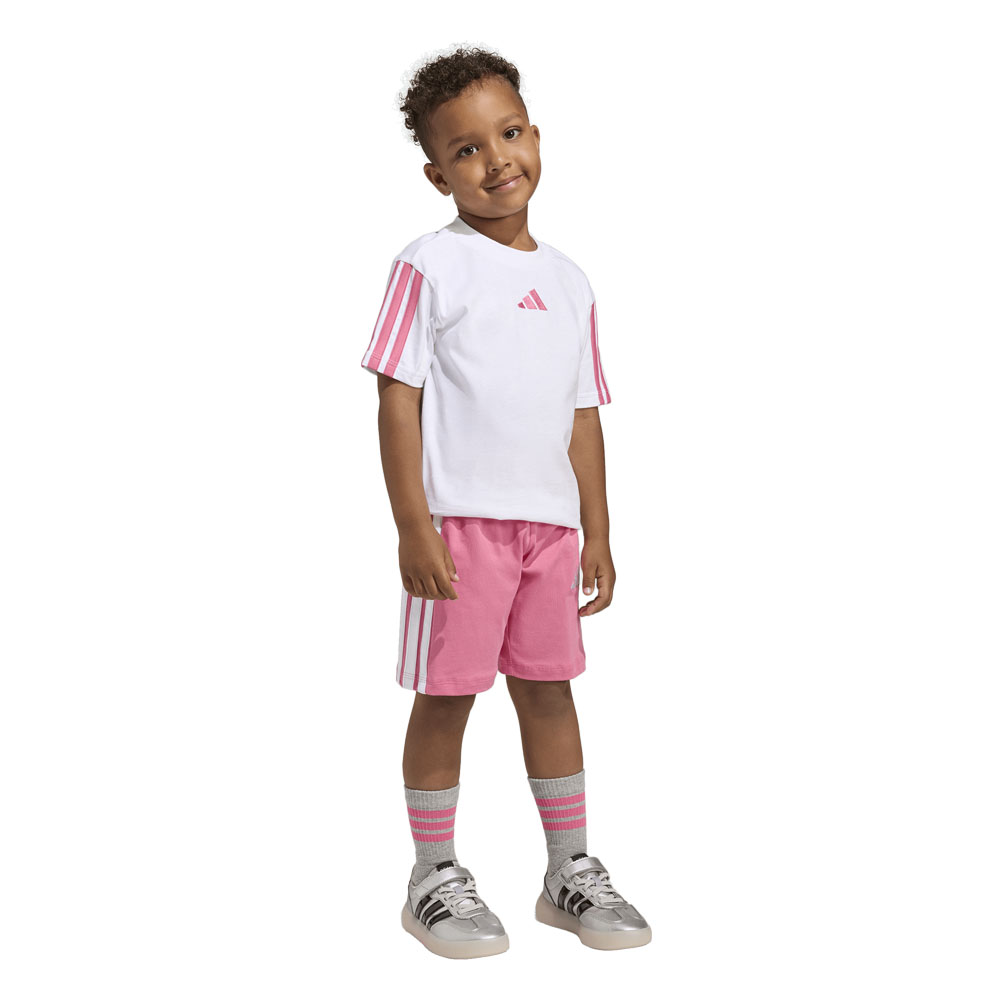 I bambini sono sempre in movimento, quindi hanno bisogno di abiti che stiano al passo con loro. Questo set composto da t-shirt e pantaloncini Adidas è pensato per le avventure di tutti i giorni grazie al suo tessuto morbido e resistente. Il design classico rende ogni capo versatile e facile da abbinare ad altri articoli del guardaroba. Le iconiche 3 strisce aggiungono il tocco finale a questo look sportivo.