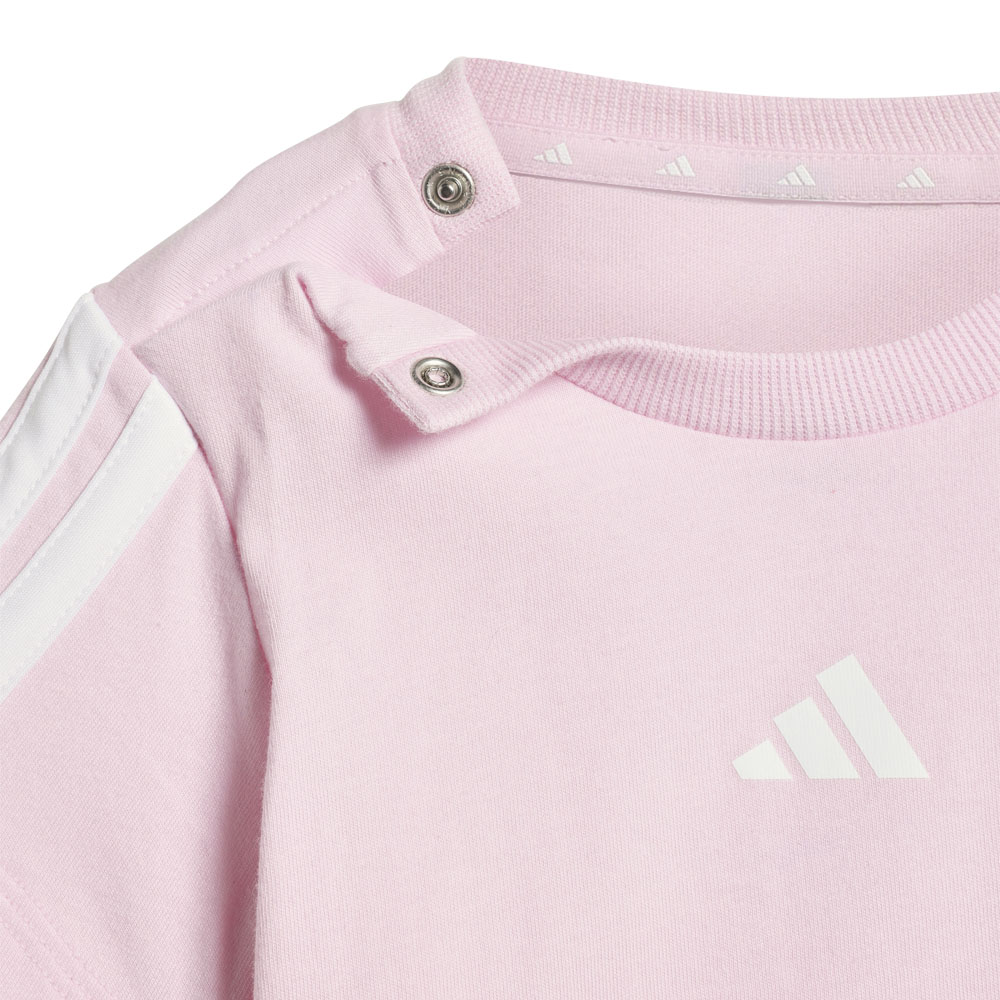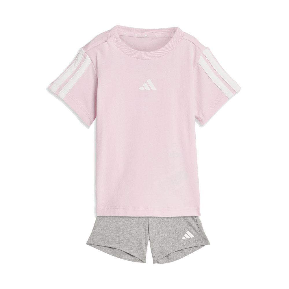 Con questo completo adidas infant, i più piccoli saranno subito pronti a giocare. La T-shirt in cotone e gli short abbinati sono perfetti per passare con disinvoltura dal parco giochi alla nanna. La struttura morbida e confortevole rendono questo completo un modello essenziale da aggiungere a qualsiasi guardaroba.