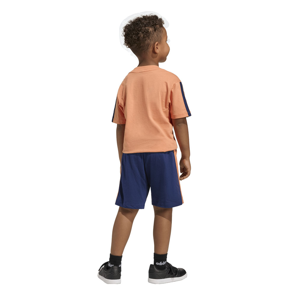I bambini e le bambine sono sempre in movimento, ecco perché hanno bisogno di un abbigliamento all'altezza. Questo completo adidas composto da T-shirt e short è realizzato in tessuto morbido e robusto per resistere alle loro avventure quotidiane. La silhouette senza tempo assicura la massima versatilità, infatti entrambi i pezzi si possono abbinare facilmente agli altri capi nel loro guardaroba. I 3 Bar Logo completano il look con un tocco sportivo.