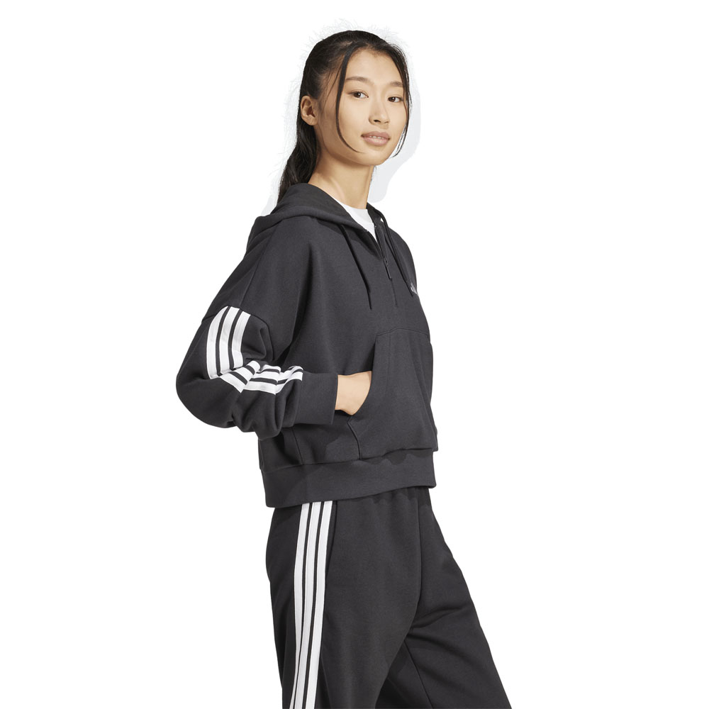 Felpa Adidas con cappuccio Essentials 3-Stripes French Terry Quarter-Zip donna