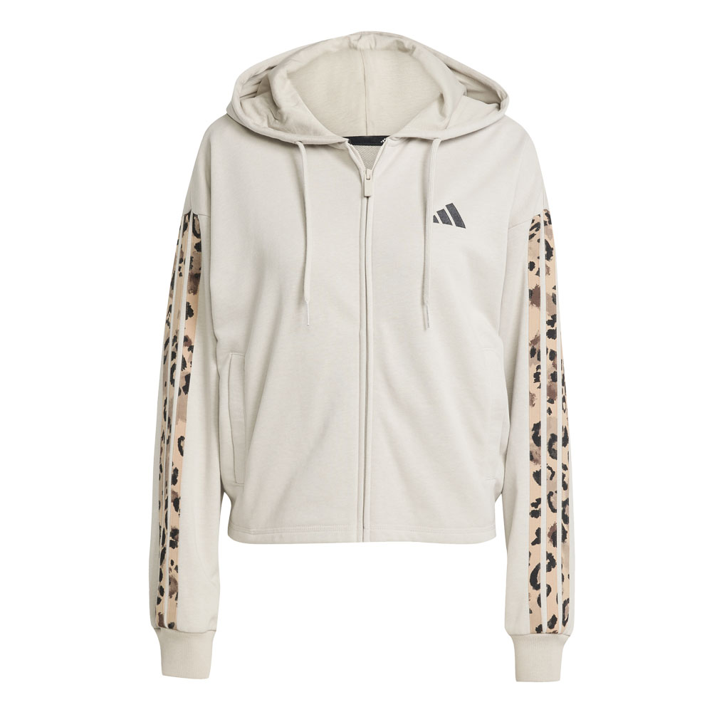 Felpa con cappuccio a 3 strisce in French Terry con stampa animalier e zip intera Adidas donna