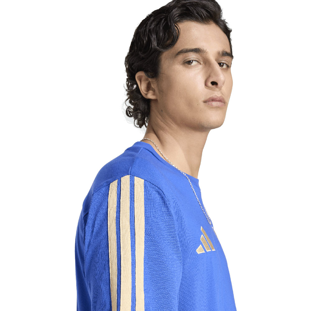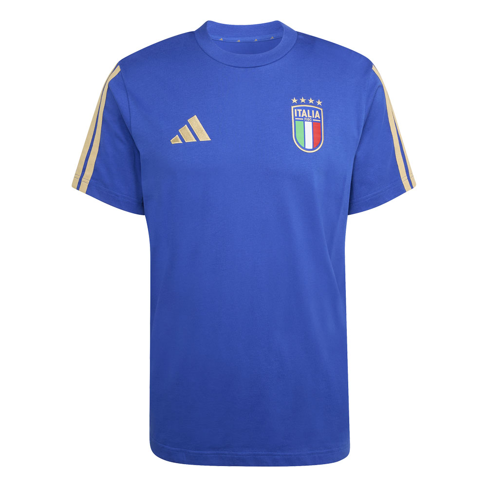 La t-shirt con il DNA dell'Italia aggiunge un tocco di eleganza e stile calcistico al tuo look: un capo che si adatta a qualsiasi situazione, senza rinunciare alla sua eleganza. Realizzata in morbido jersey, offre comfort e leggerezza con una vestibilità regolare e versatile. Il classico scollo a girocollo accentua le linee pulite e conferisce un profilo deciso. Rifinita con il marchio adidas Performance e lo stemma della Federazione Italiana Giuoco Calcio, esprime in modo pulito l'orgoglio per la squadra, con un tocco raffinato che si adatta alla vita di tutti i giorni.