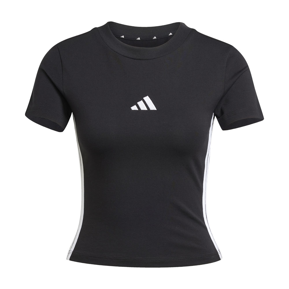 Questa T-shirt adidas aggiorna un look senza tempo. La vestibilità aderente avvolge il corpo per una silhouette contemporanea che si abbina perfettamente a qualsiasi capo, dai pantaloni della tuta ai jeans. Il 3 Bar Logo sul petto strizza l'occhio alla storia sportiva del brand.