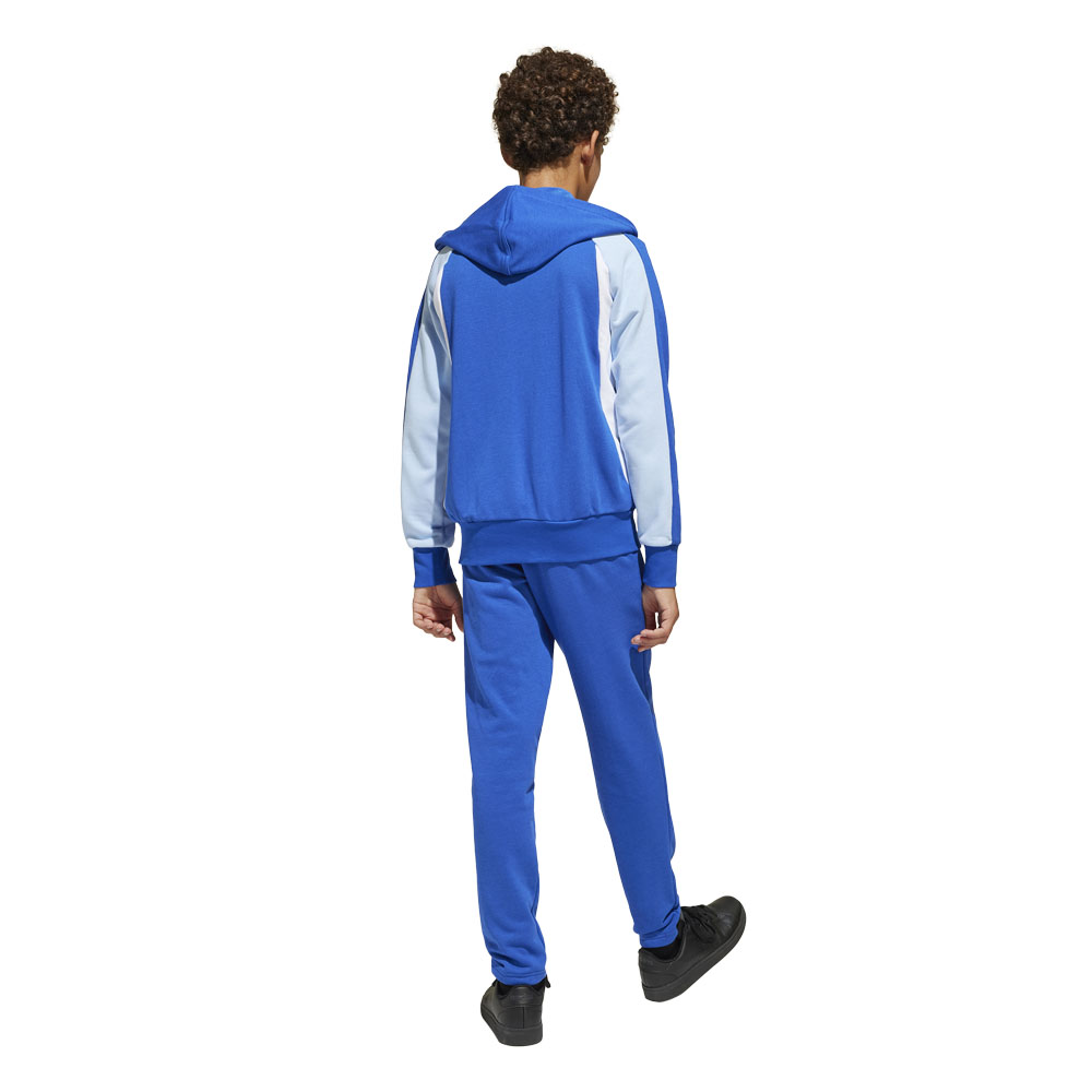Mostra il tuo stile sportivo con questa tuta adidas junior. La struttura in spugna assicura la morbidezza e il comfort necessari per affrontare qualsiasi sfida. Il motivo colorblock e i piccoli 3 Bar Logo aggiungono un dettaglio che si abbina perfettamente a sneaker e ciabatte.