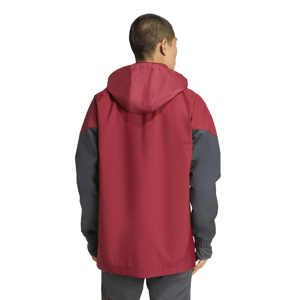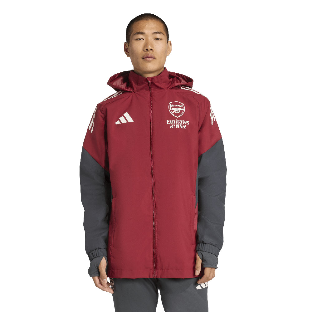 Indossa questa giacca adidas Tiro 25 Competition dell'Arsenal e sostieni i Gunners in qualsiasi condizione meteorologica. Questo modello, indossato dai giocatori prima delle partite di campionato più importanti, si caratterizza per il cappuccio ripiegabile e la struttura idrorepellente, per giocare senza distrazioni anche sotto una leggera pioggia. Lo stemma della squadra ribadisce con orgoglio la tua fede calcistica.