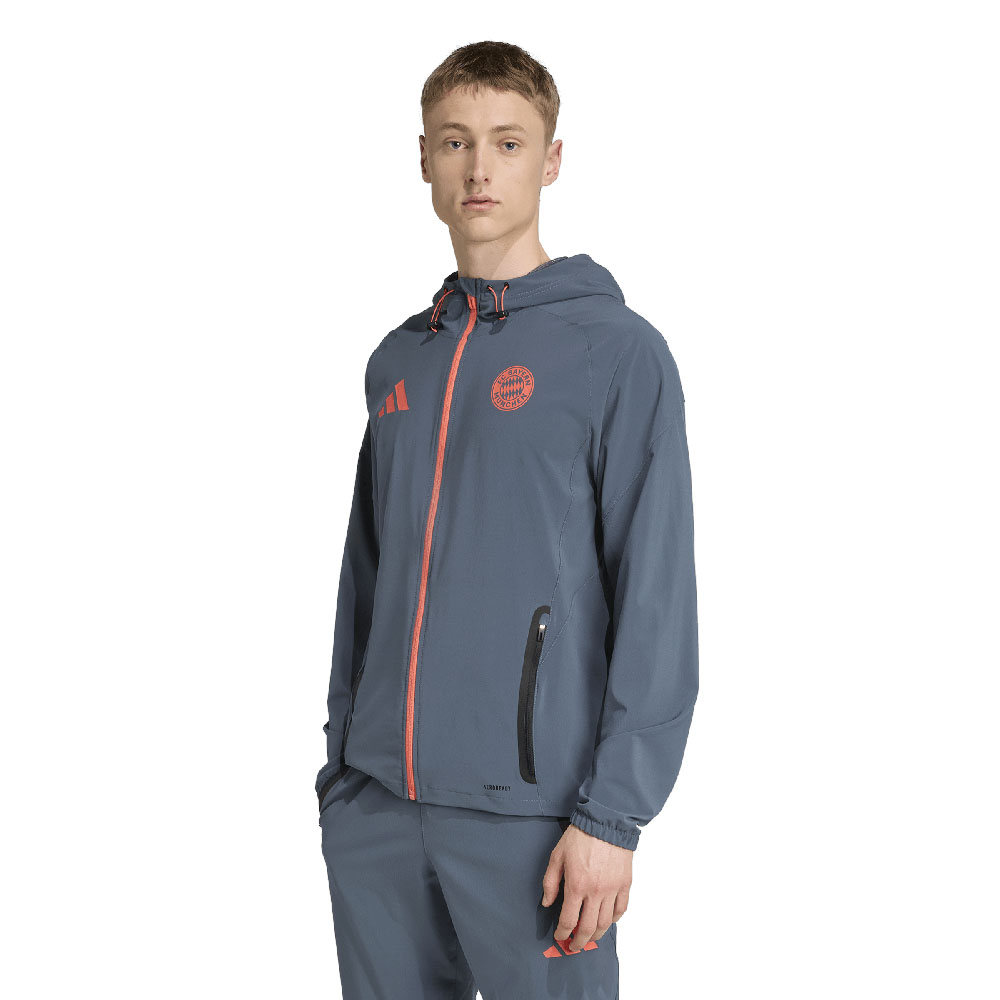 Che il tuo viaggio ti porti in città o in giro per il mondo, rappresenta l'FC Bayern con stile. Combinando prestazioni tecniche con l'orgoglio del club, questa elegante giacca adidas ti manterrà asciutto e concentrato quando la pressione è alta. Il tessuto elasticizzato garantisce comfort dalla partenza alla destinazione e lo stemma riflettente della squadra non lascia dubbi sul tuo orgoglio calcistico.