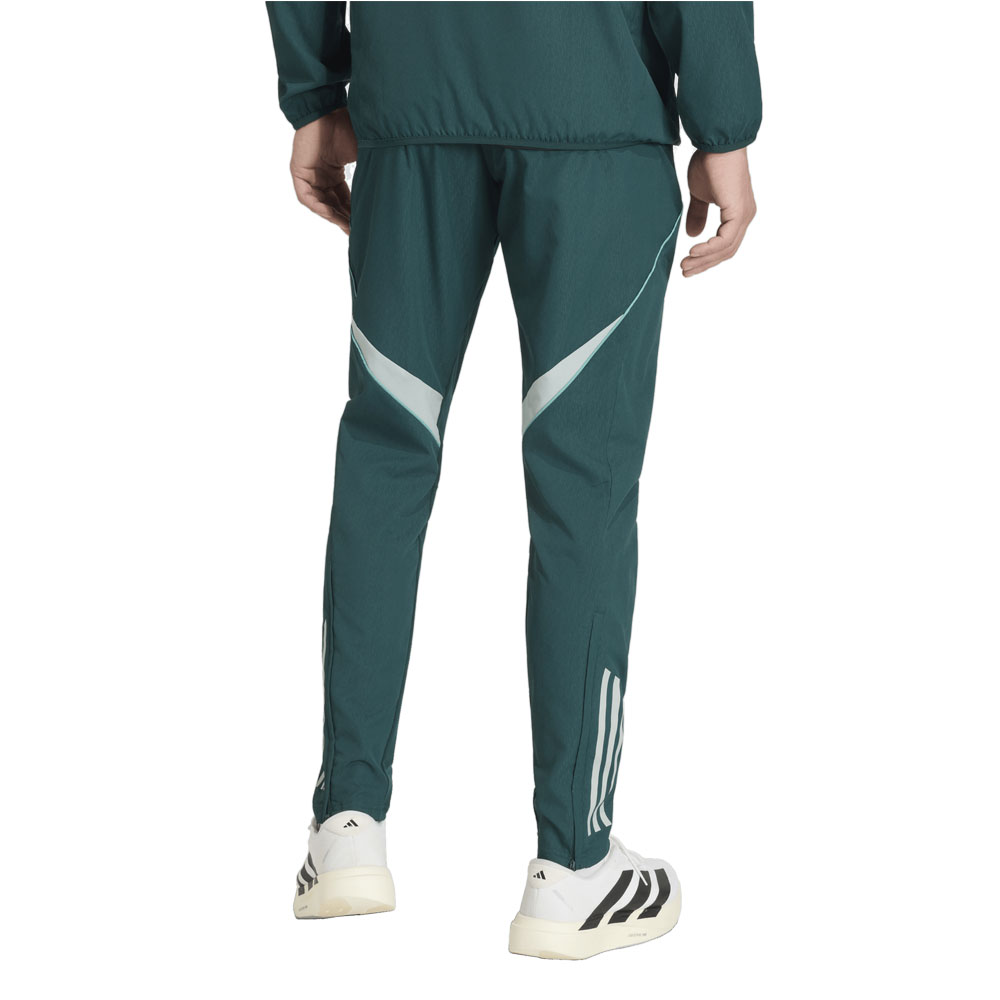 Creati per portare un tocco tecnico a bordo campo, questi pantaloni adidas dell'Arsenal sono identici al modello indossato dai giocatori fuori dal campo. La struttura in morbido dobby assicura il massimo comfort durante le interviste e gli eventi, mentre le due tasche con zip sono perfette per custodire telefono e chiavi. Lo stemma dei Gunners ricamato ti aiuta a rappresentare la tua squadra.