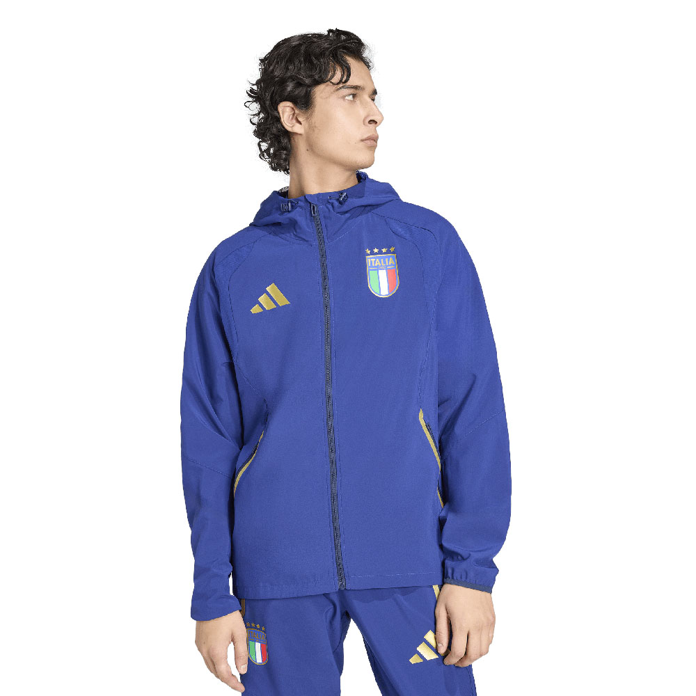 La giacca a vento Italia Tiro Travel Full Zip è un remake dell'estetica ispirata al calcio. Con la sua silhouette pulita e contemporanea, offre un look lifestyle ispirato alla storia. Il tessuto a tela offre una sensazione di leggerezza e relax, per il massimo comfort in movimento. Grazie alla chiusura con zip integrale e al cappuccio regolabile, offre copertura in caso di condizioni atmosferiche mutevoli e imprevedibili. Il look è completato dallo stemma italiano e dal iconico marchio adidas Performance, per una giacca versatile che unisce funzionalità e moda in uno stile unico.