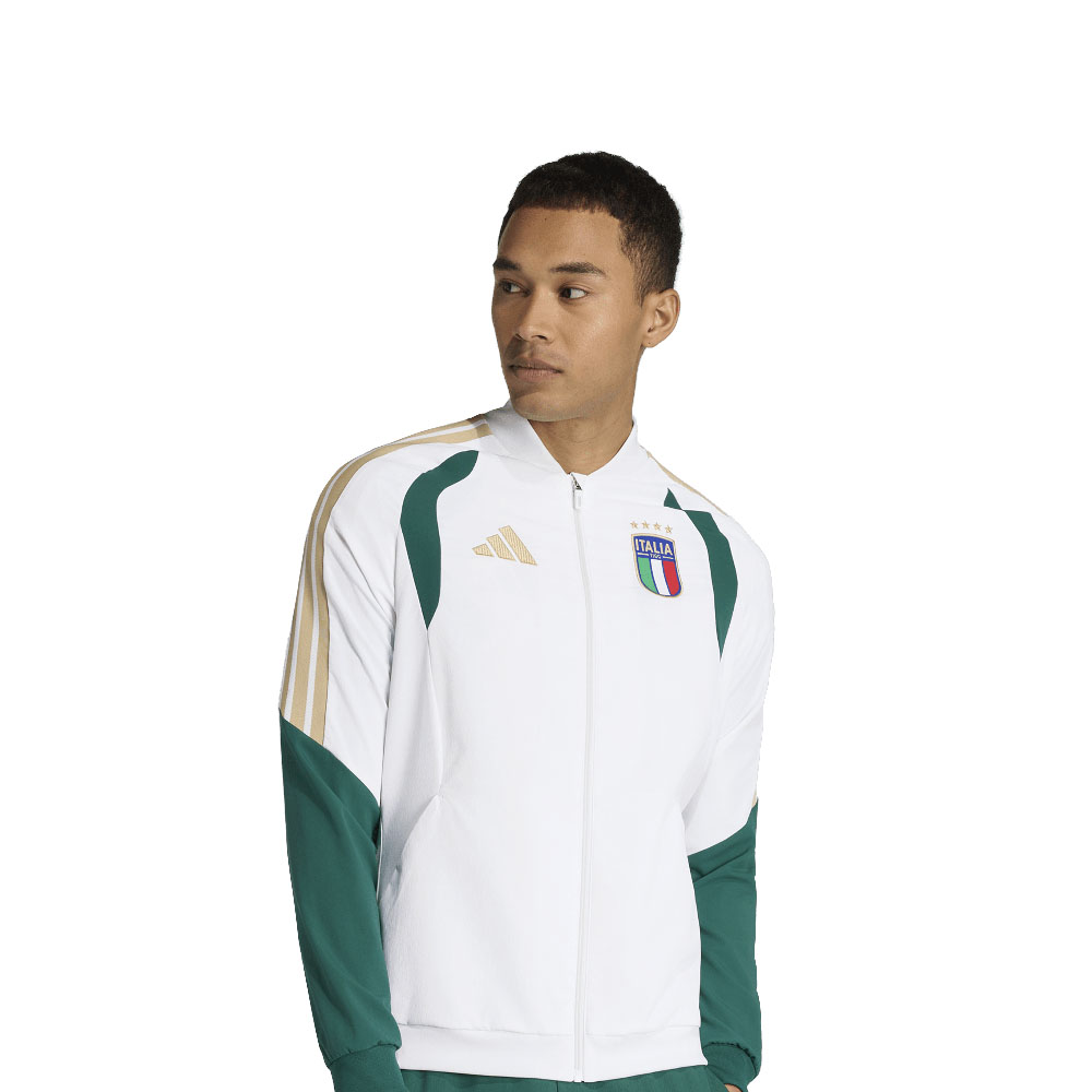 La tradizione incontra le prestazioni contemporanee nella giacca Italia 26 Tiro Presentation. Ispirata alleleganza del calcio italiano, questa giacca è un richiamo alla celebrazione e al significato dello sport. Realizzata con materiali resistenti, è progettata per resistere agli allenamenti più intensi senza perdere il suo look iconico. Il materiale cucito leggero ti aiuta a mantenere agilità e freschezza. La chiusura con zip integrale consente di indossarla e toglierla con facilità, mentre la vestibilità aderente assicura una silhouette raffinata. Il logo adidas è rappresentato con eleganti ricami a zig-zag e il nastro con le 3 Strisce in maglia, a sottolineare il nostro impegno per la qualità e lo stile. Per il riscaldamento o il defatigamento, questa giacca non delude mai.
