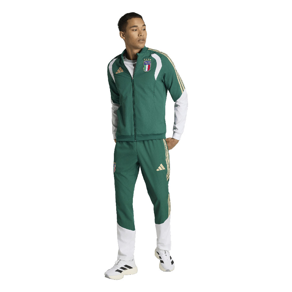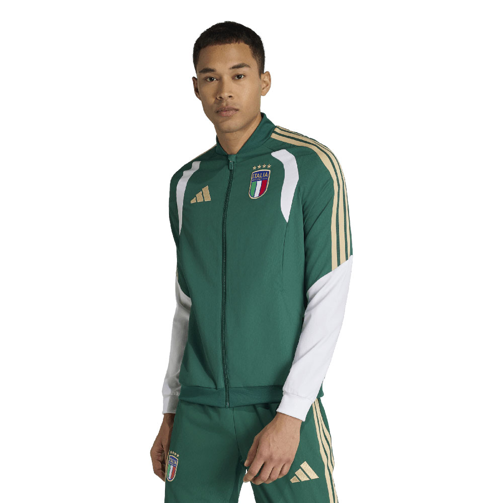 La tradizione incontra le prestazioni contemporanee nella giacca Italia 26 Tiro Presentation. Ispirata alleleganza del calcio italiano, questa giacca è un richiamo alla celebrazione e al significato dello sport. Realizzata con materiali resistenti, è progettata per resistere agli allenamenti più intensi senza perdere il suo look iconico. Il materiale cucito leggero ti aiuta a mantenere agilità e freschezza. La chiusura con zip integrale consente di indossarla e toglierla con facilità, mentre la vestibilità aderente assicura una silhouette raffinata. Il logo adidas è rappresentato con eleganti ricami a zig-zag e il nastro con le 3 Strisce in maglia, a sottolineare il nostro impegno per la qualità e lo stile. Per il riscaldamento o il defatigamento, questa giacca non delude mai.