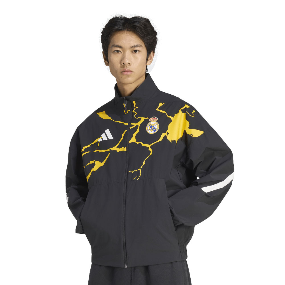 Entra nel mondo delle leggende del calcio con la Giacca Anthem adidas Avengers Z.N.E. Real Madrid. Unendo due universi di eccellenza, questa giacca va oltre lo stile, raccontando una storia di passione e performance. Ispirata alle linee del campo da gioco, la giacca sfoggia stampe in gomma opaca che richiamano precisione e potenza, caratteristiche del Real Madrid. Realizzata in robusto tessuto ripstop e con una vestibilità ampia, garantisce praticità e totale libertà di movimento. I cordini e le zip di ispirazione tecnica, impreziositi da elementi termoretraibili in gomma opaca, conferiscono un tocco moderno, rendendo questo capo perfetto sia per le prestazioni in campo sia per uno stile urbano fuori dal campo. Che tu stia tifando dagli spalti o facendo una passeggiata, questa giacca ti permette di farlo con stile ed eleganza. Vivi lo spirito del gioco e l'eredità del Real Madrid con questo capo iconico di adidas.