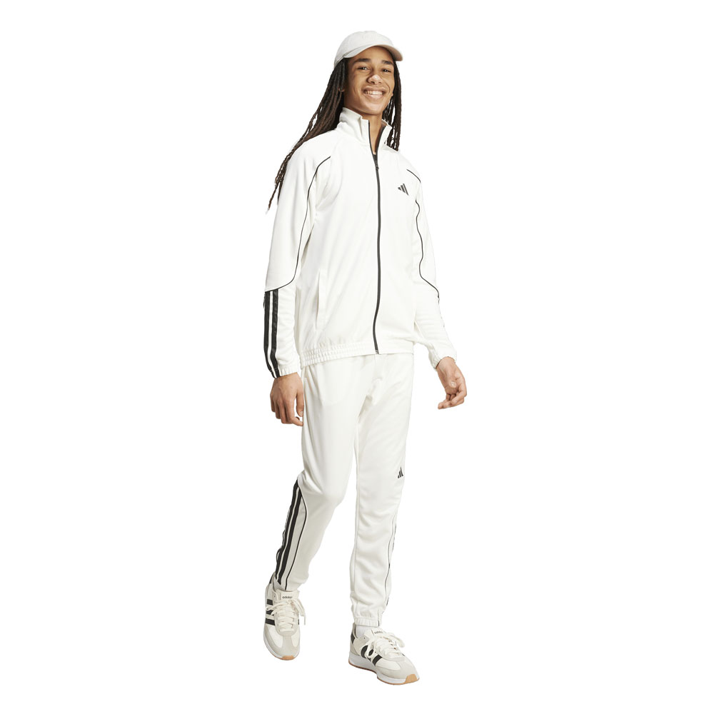 Questa tuta adidas dà una nuova interpretazione a uno dei look più versatili e accessibili dellabbigliamento sportswear. Perfetta per le giornate in cui la praticità è fondamentale, indossala con le tue sneaker preferite per uno stile ispirato all'athleisure. Usala come completo o combina la giacca e i pantaloni con altri capi del tuo guardaroba per creare tantissimi outfit. Lesclusivo motivo a 3 strisce lungo la parte inferiore delle gambe testimonia la tua passione per adidas.