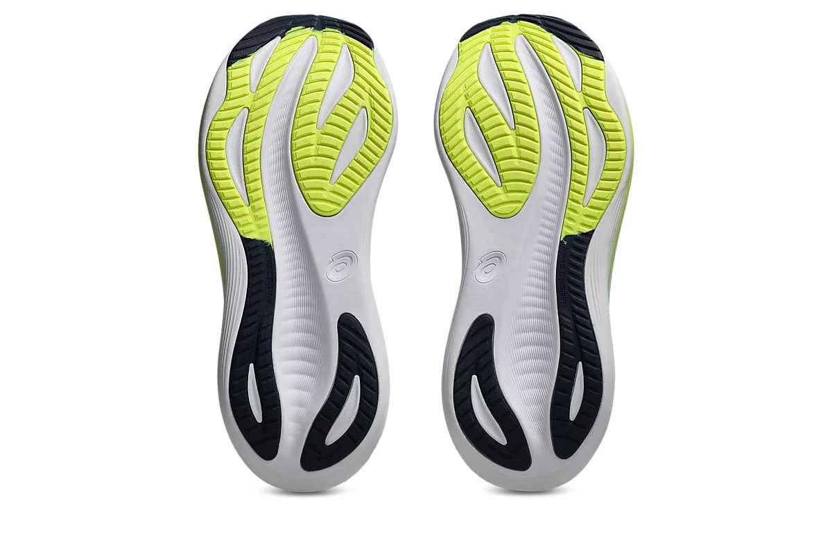 La suola HYBRID ASICSGRIP combina infine la gomma ASICSGRIP e materiali AHARPLUS per garantire un'aderenza avanzata su diversi tipi di terreno e un'ottima resistenza.