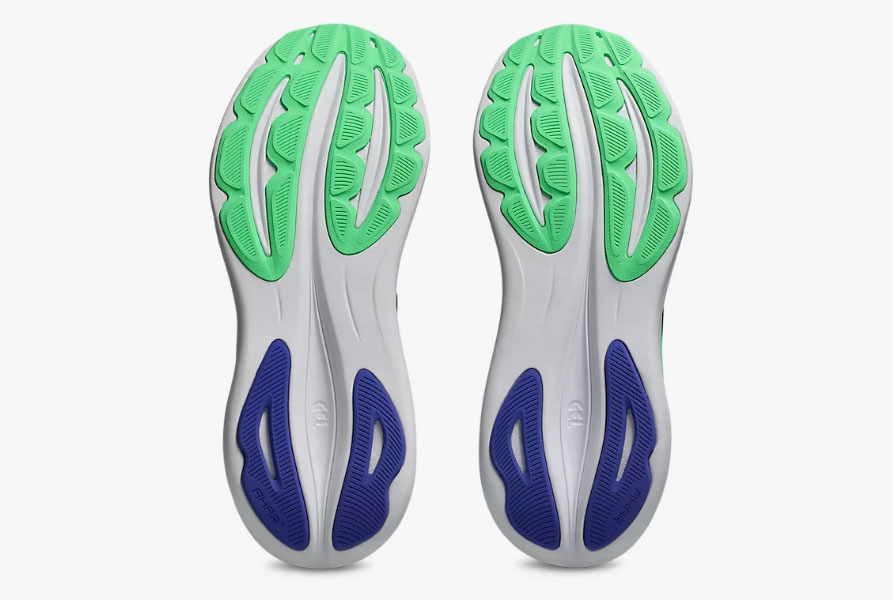 Per migliorare l'ammortizzazione sotto il piede, abbiamo aggiunto 2 mm di schiuma nell'intersuola. Questo materiale ammortizzante è composto dalle tecnologie FF BLAST e GEL, per un'esperienza di corsa morbida e confortevole.