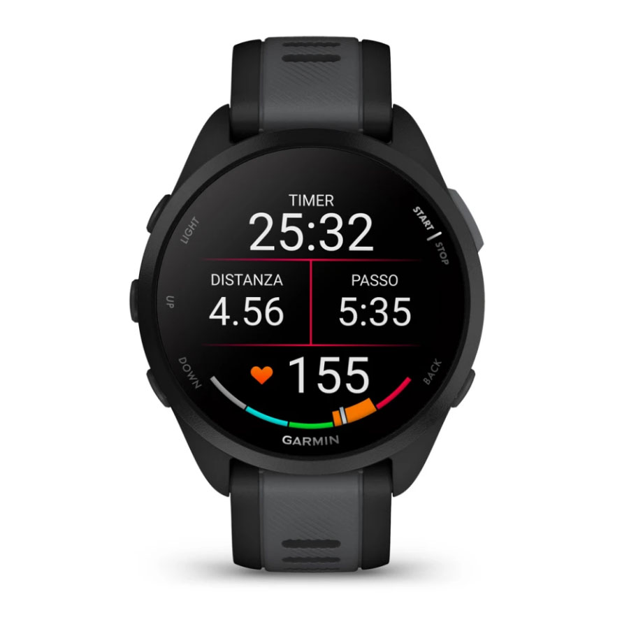 Forerunner 165 è il GPS smartwatch appositamente progettato per la corsa, che ti aiuta a raggiungere i tuoi obiettivi con piani di allenamento adattativi personalizzati e un display AMOLED per avere in un colpo d'occhio i tuoi progressi.