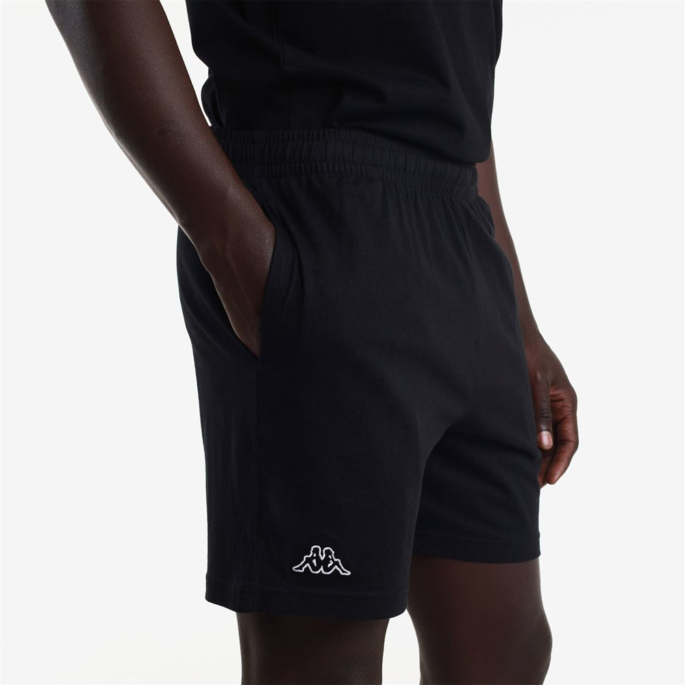 Pantaloncino uomo Kappa Pantaloncino da uomo realizzato in jersey. Tasche laterali senza zip. Logo Omini ricamato sul lato in contrasto colore.- Tessuto 100% cotone- Colore prodotto Black
