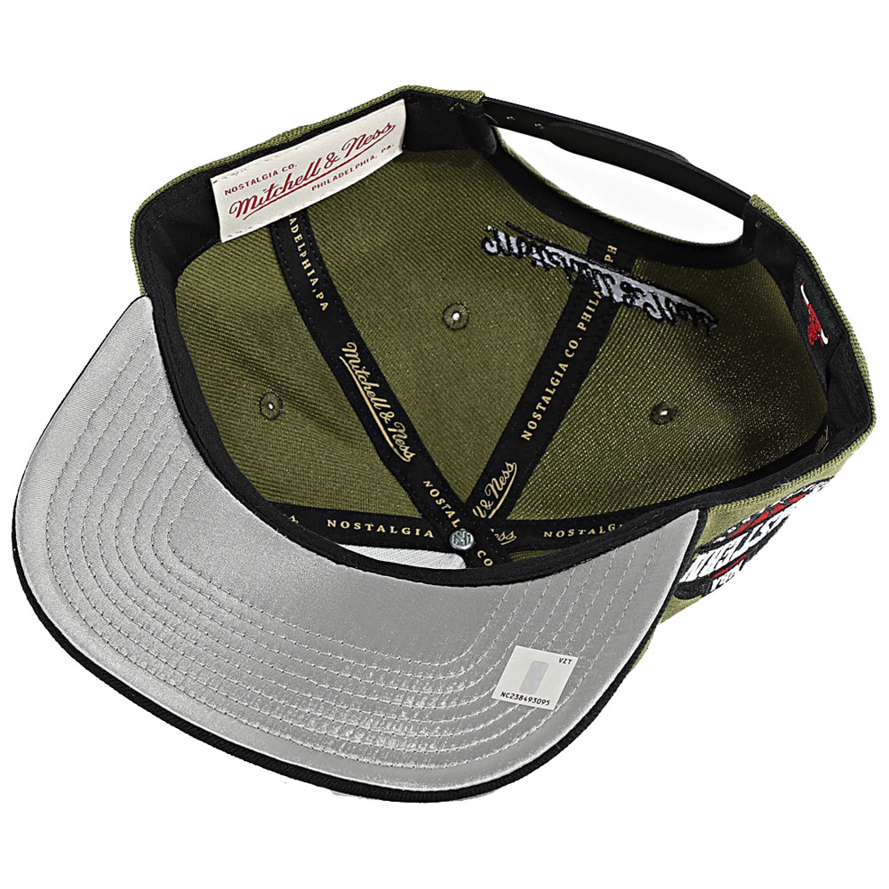 Cappellino Mitchell e Ness snapback Chicago BullsCappellino unisex Mitchell & Ness verde con motivo della squadra dei Chicago Bulls.- Tessuto 100% PoliestereColore Verde/Nero