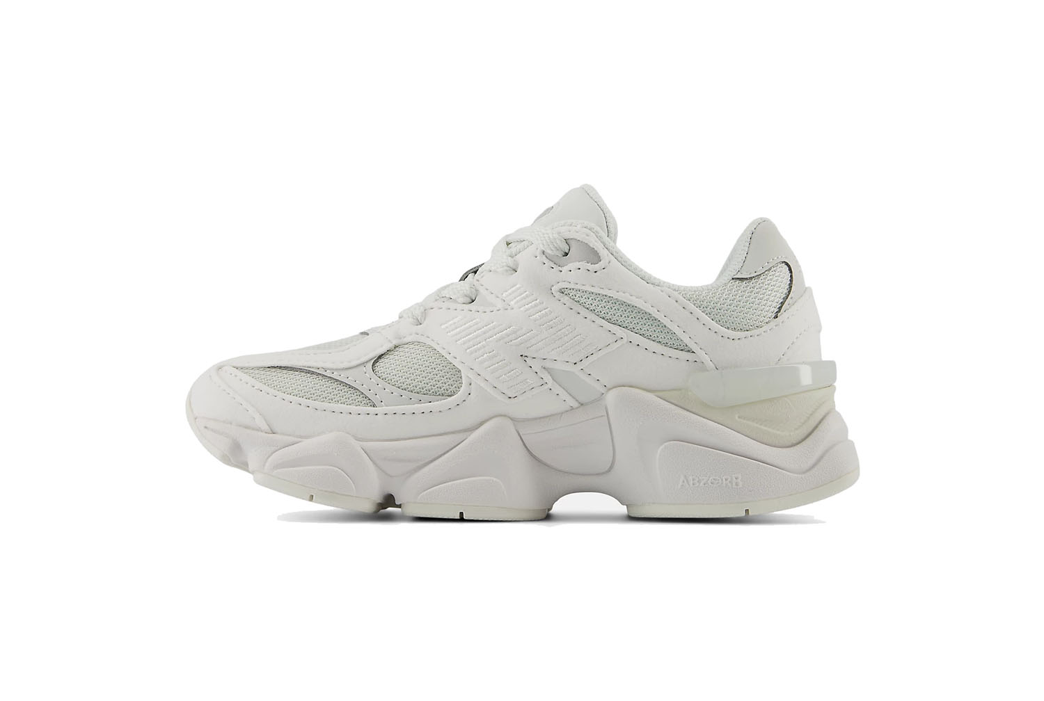 Le 9060, disponibili per i bambini, rappresentano una nuova espressione dello stile raffinato e del design innovativo della classica serie 99X. Il modello 9060 reinterpreta gli elementi familiari del 99X con una sensibilità visionaria, ispirata all'estetica visibilmente tecnologica e orgogliosamente futuristica dell'era Y2K. Le barre di oscillazione, riprese dalle 990, sono state ampliate e utilizzate su tutta la tomaia per conferire un senso di movimento visibile, mentre le linee ondulate e le proporzioni scalate sull'intersuola scolpita pongono un'enfasi esagerata sulle note piattaforme di ammortizzazione ABZORB e SBS.