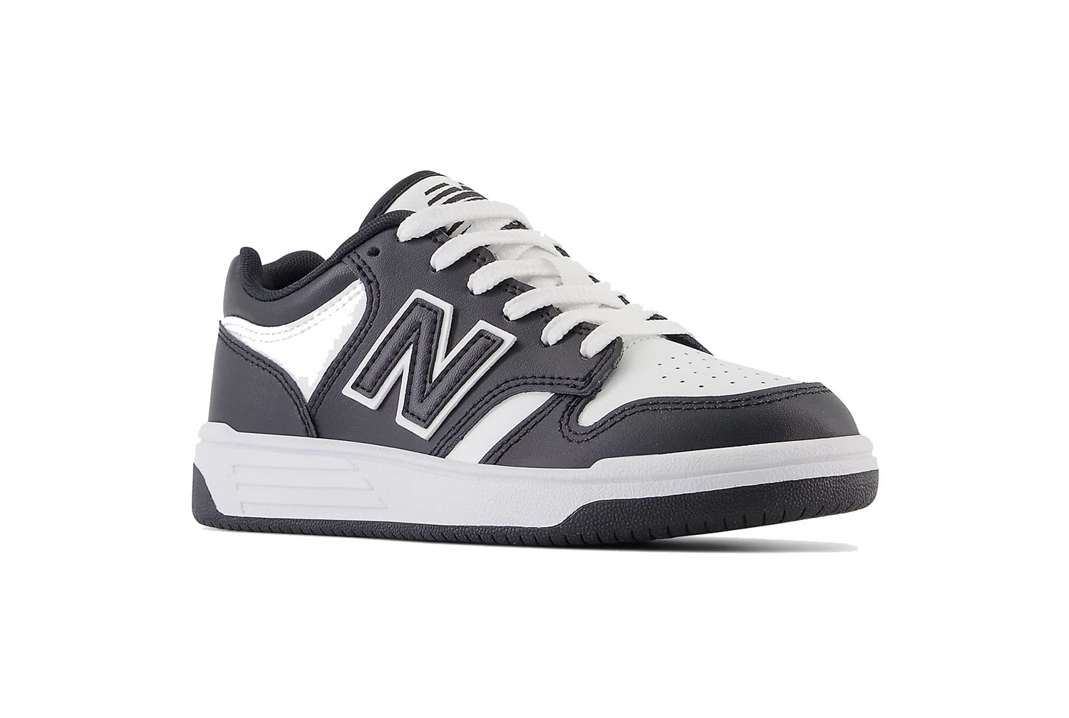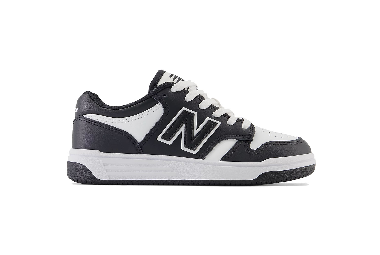 Scarpe da bambino New Balance della serie 480, che trae ispirazione dai classici modelli da basket.