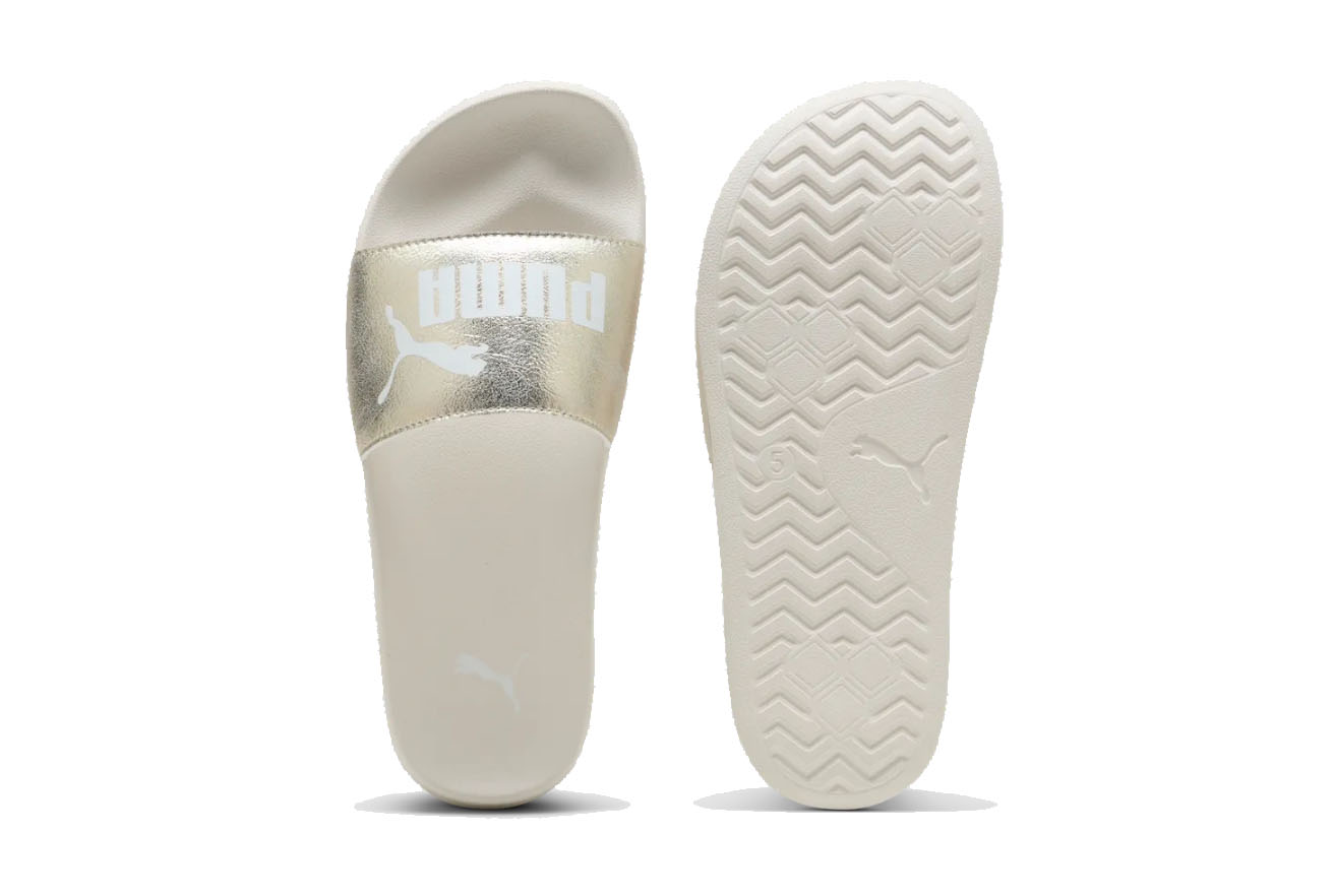 Illumina la tua stagione con la versione più preziosa delle Leadcat 2.0. Parte della ricercata collezione "Metallic Whisper", questa slide è pensata per chi desidera un look sofisticato senza rinunciare alla praticità. Il punto focale è l'iconico Formstrip PUMA proposto in una finitura dorata, che trasforma questa calzatura in un piccolo gioiello di design.