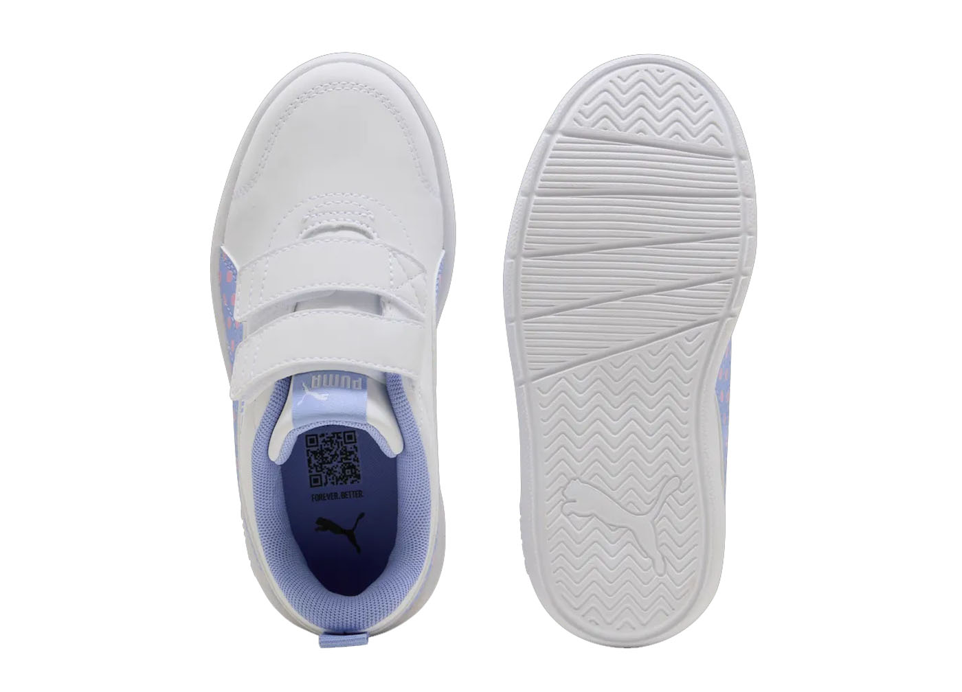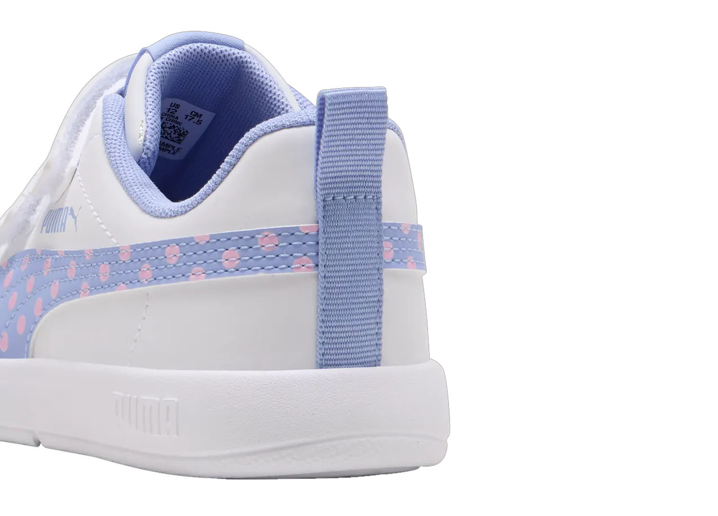 Puma Courtflex v3 Dotty V BambineSneakers da bambina con chiusura a strappo con velcro.Colore PUMA White-Intense Lavender-Pink Shimmer