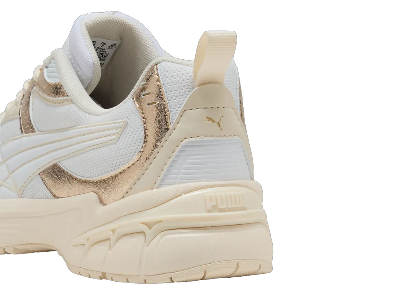 Ispirandosi direttamente ai primi anni 2000, questa scarpa da running progressiva unisce versatilità e comfort. Caratterizzata da una tomaia in mesh, rivestimenti in pelle sintetica, inserti in EVA e inserto in TPU sul tallone, questa scarpa è l'elemento perfetto per impreziosire il tuo look streetstyle. Parte della collezione "Metallic Whisper", questa versione è pensata per stupire con la nuova striscia sagomata in oro o argento.