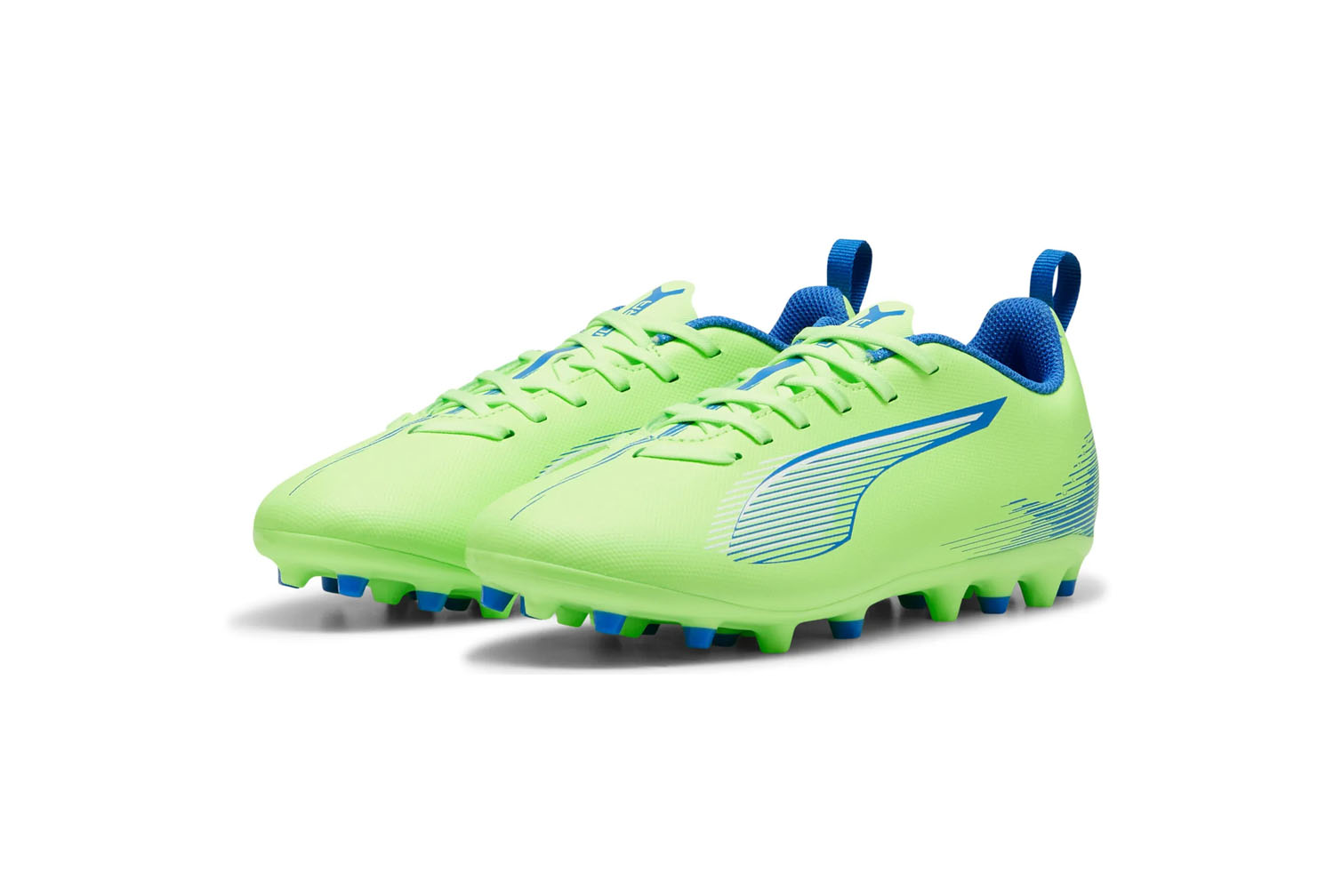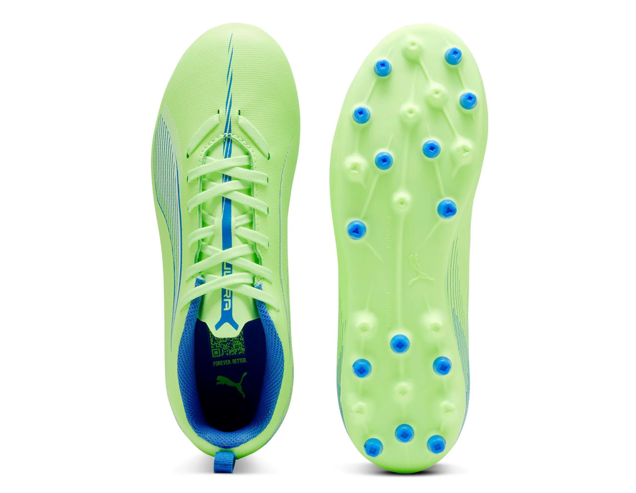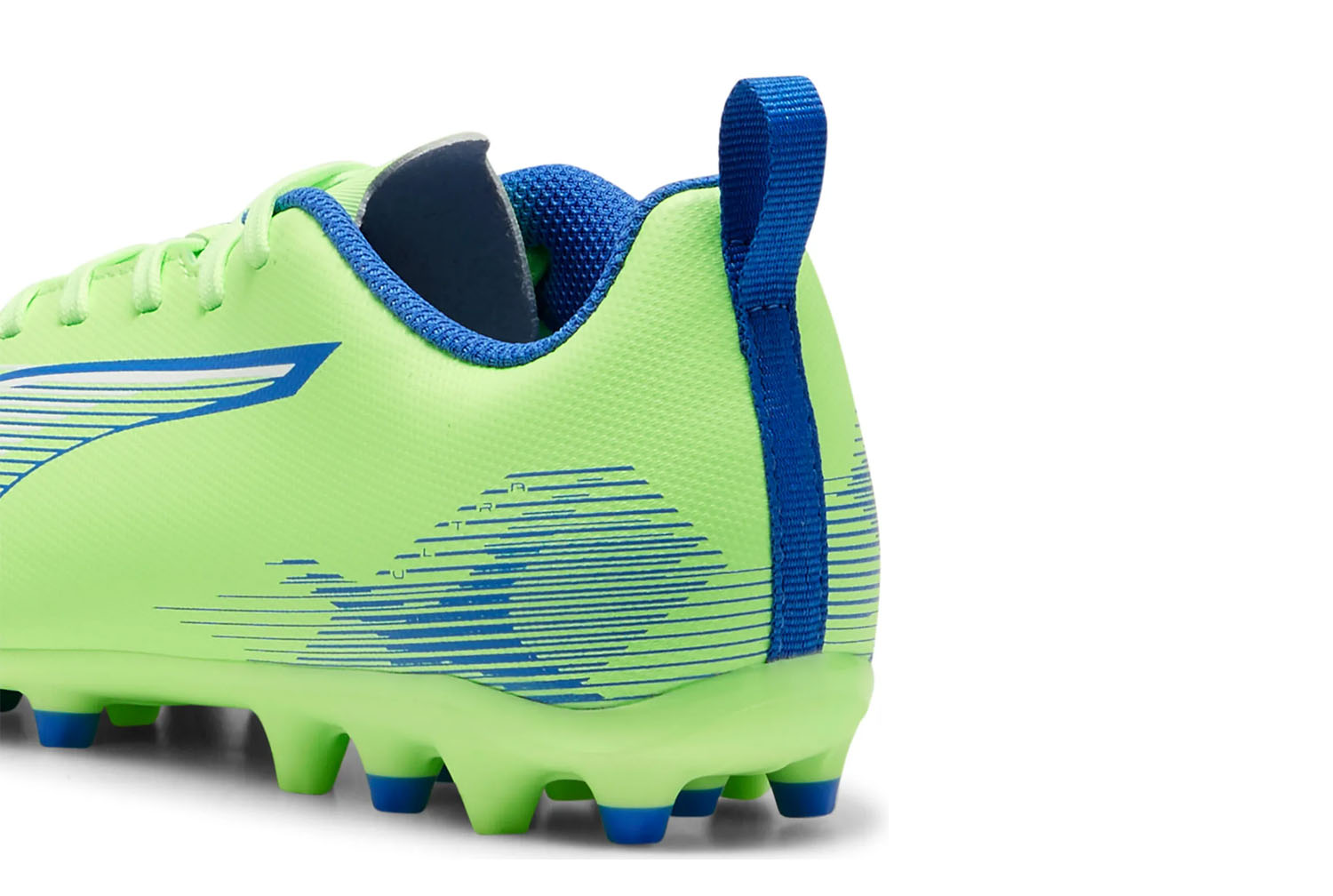 Puma Ultra 5 Play MG Jr.Scarpe da calcio.Suola Multiground per campi in erba sintetica e per campi naturali duri.Colore Prodotto Fizzy Apple-PUMA White-Bluemazing