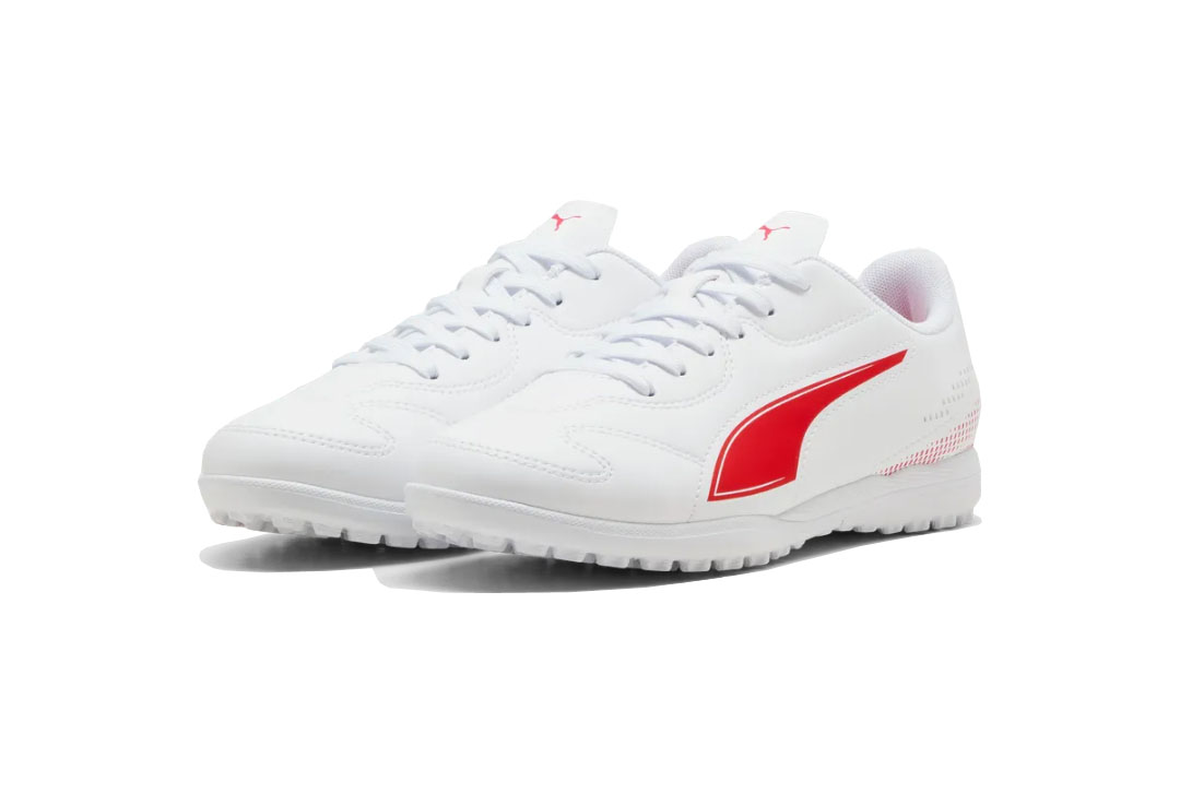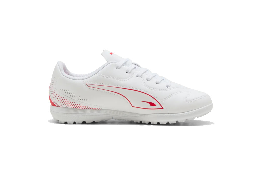 Puma Vitoria II TT JRScarpe da calcetto per bambini, suola Turf per erba sintetica.Colore Prodotto PUMA White-PUMA Red