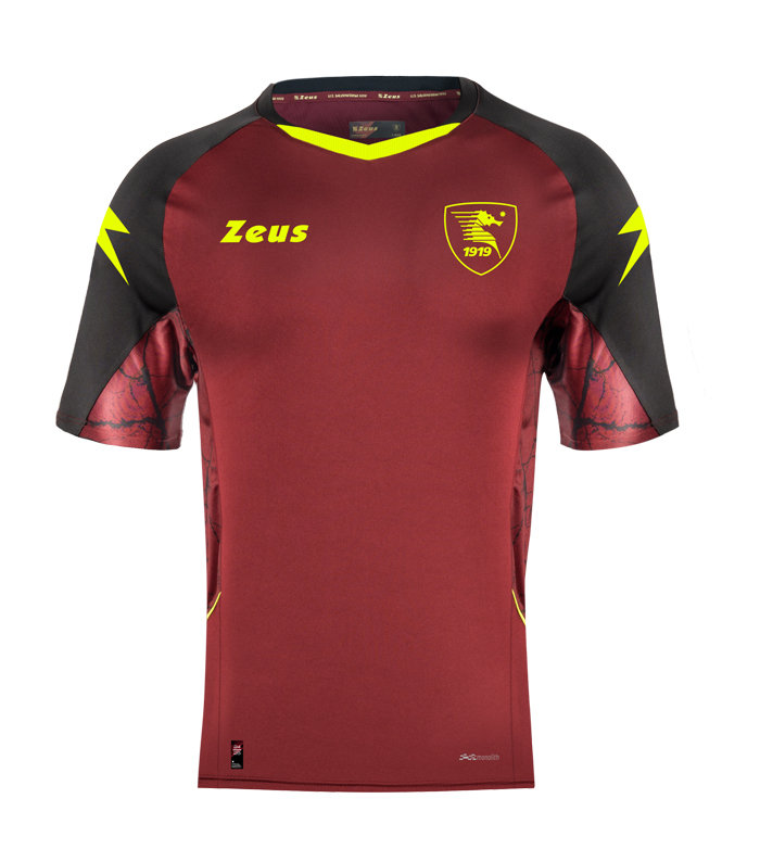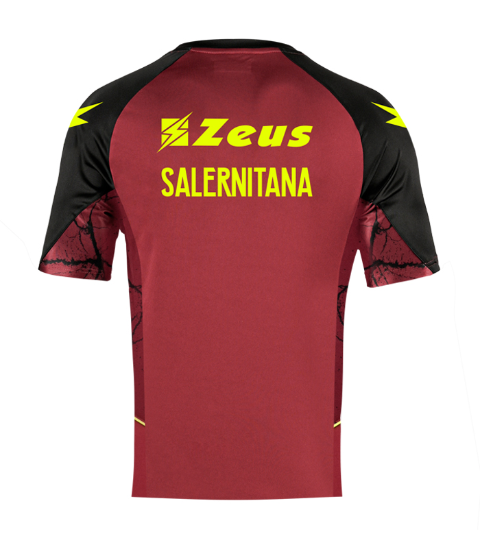 Kit da allenamento a manica corta ideale per l'allenamento estivo.Trama stampata sul fianco e dettagli fluo. Logo Zeus stampato e logo Salernitana in silicone. Tecnologia Monolith.