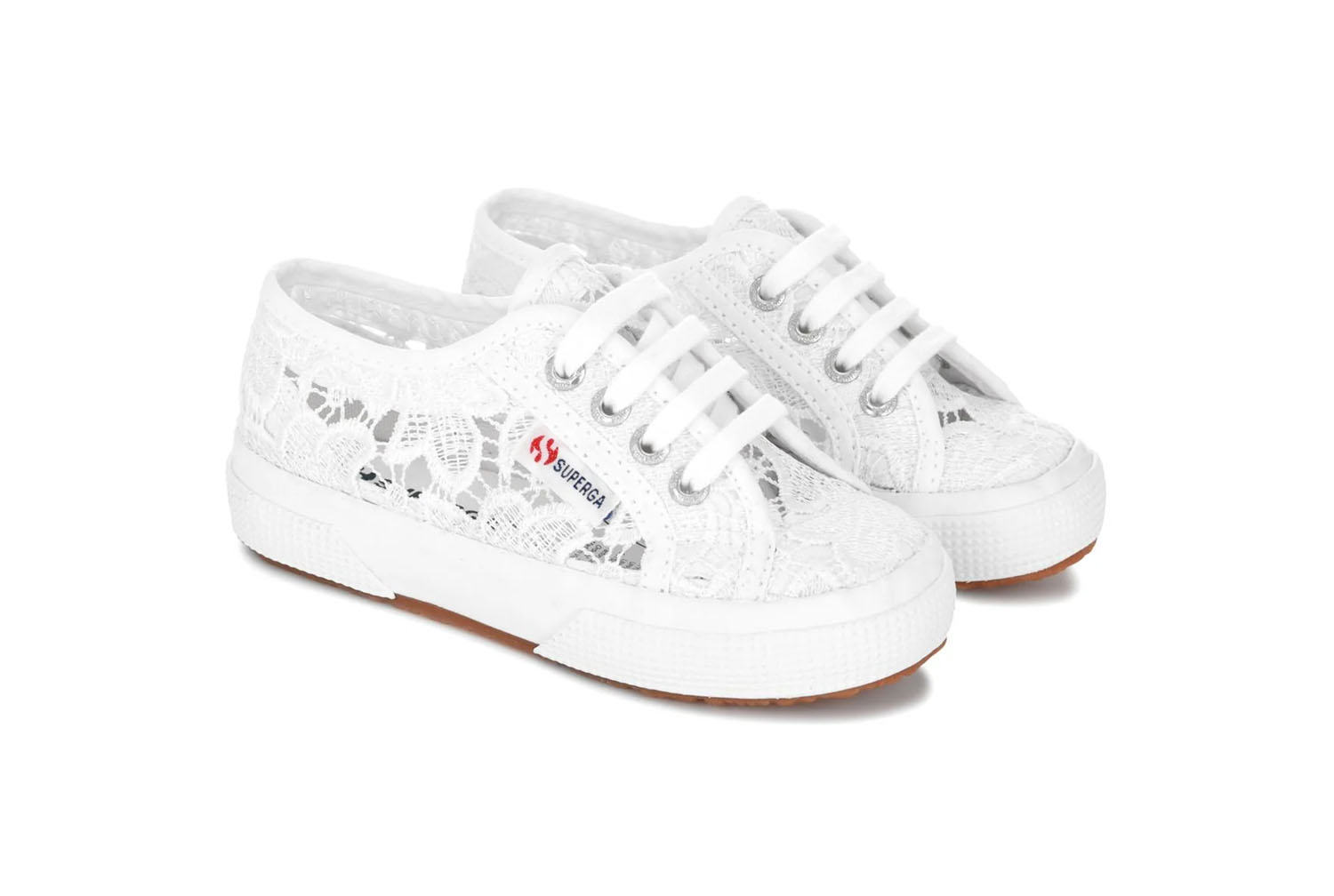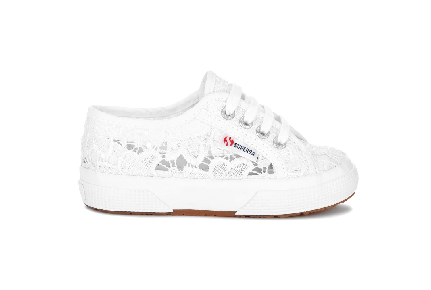 Romantica e preziosa con delicati effetti see through. La classica Superga 2750 è reinterpretata in pizzo macramé per aggiungere un tocco chic al guardaroba delle bambine. La punta arrotondata e la suola in gomma vulcanizzata accolgono il piede e rendono la calzata comoda e leggera.