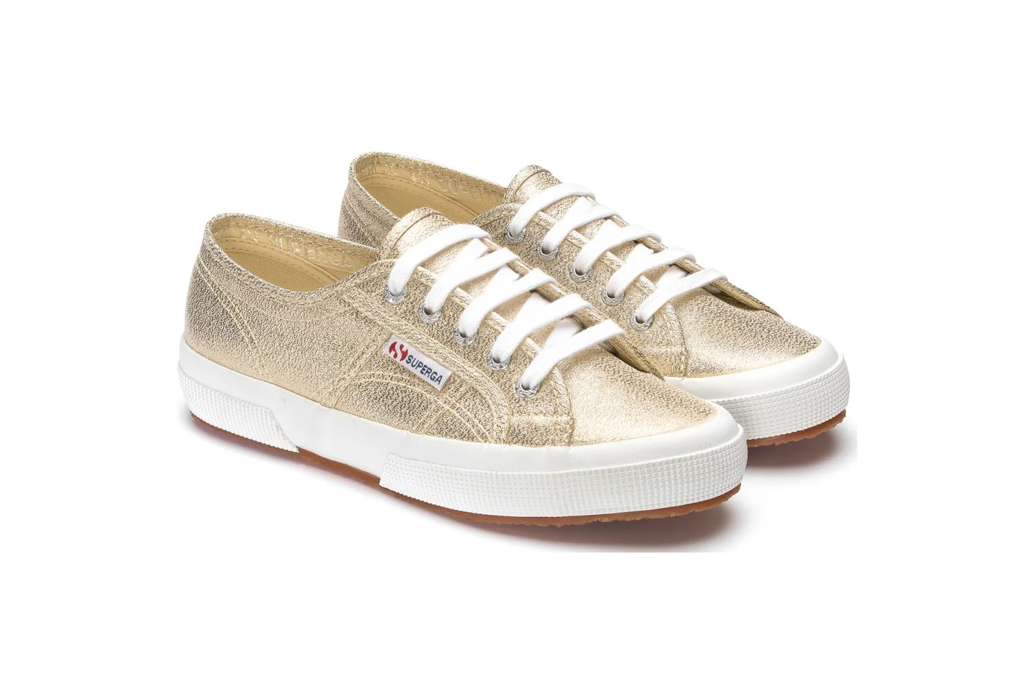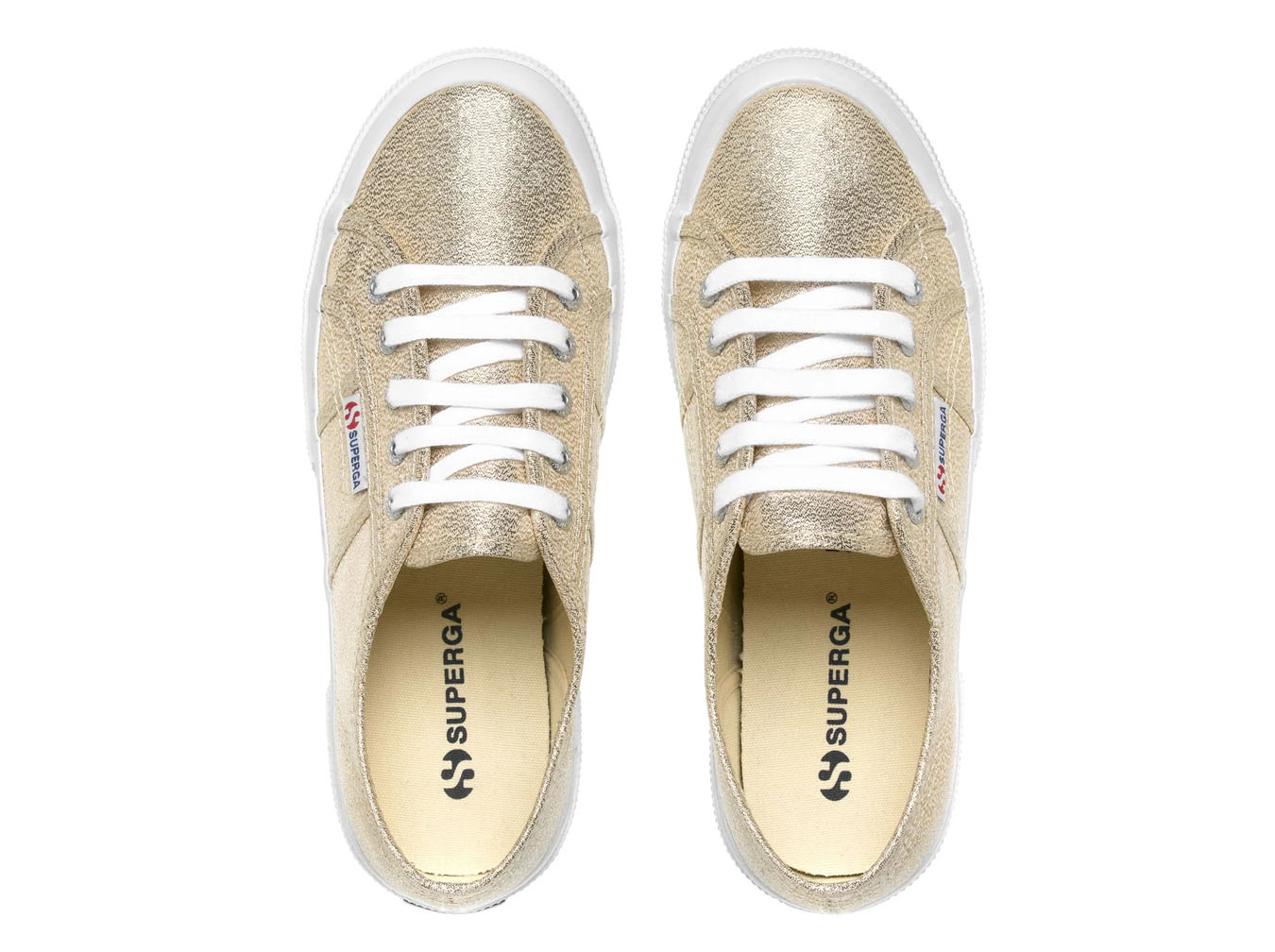 Classica senza tempo. L'iconica sneaker Superga 2750 è reinterpretata in chiave sporty-chic con questa luminosa tomaia in lamè. Presenta lacci in cotone per giocare con lo styling, label logata sul lato e suola in gomma naturale vulcanizzata che assicura massima libertà di movimento.
